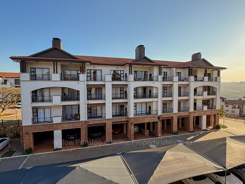 Effortless lock-up-and-go living steps from Gateway Theatre of Shopping and a short drive to Umhlanga Promenade, with a balcony overlooking manicured gardens and communal pool; two beds, two baths, covered parking.
