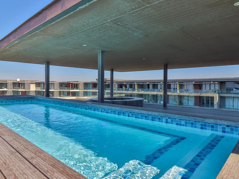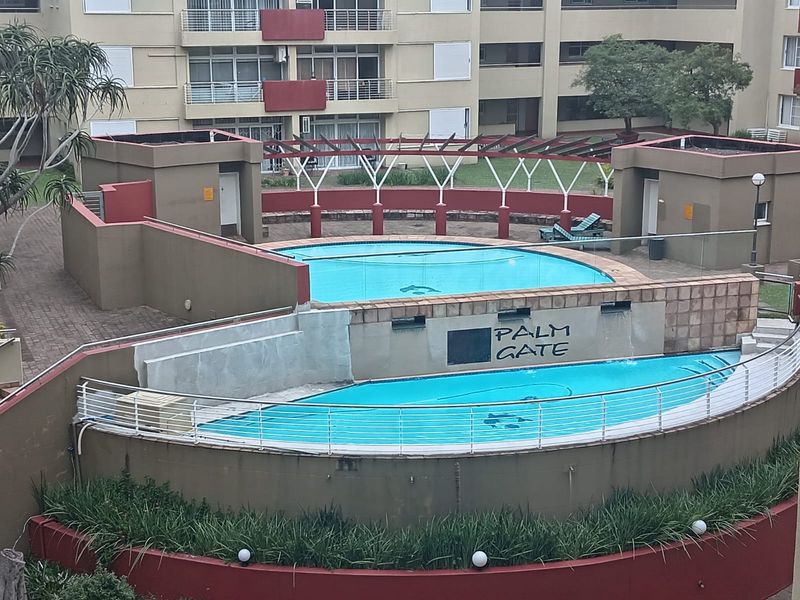 Relaxed Umhlanga Ridge lifestyle with open-plan living and dining, communal pool and secure covered parking — comfortable two-bedroom, one-bath apartment.