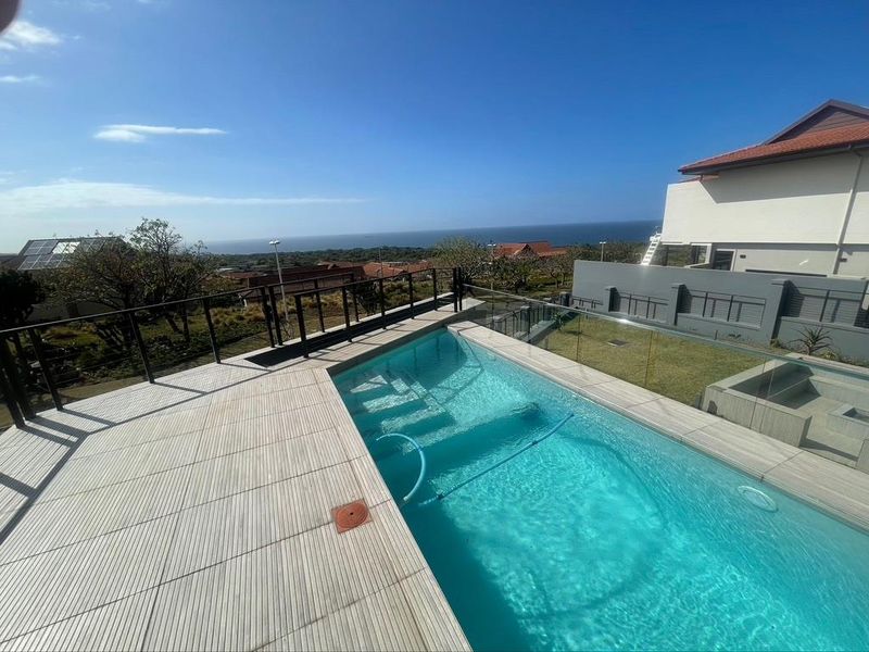 Coastal living in Umhlanga Rocks — enjoy sea views, private pool and landscaped gardens, bright north-east orientation and modern open-plan living; four bedrooms, four bathrooms and double garage.
