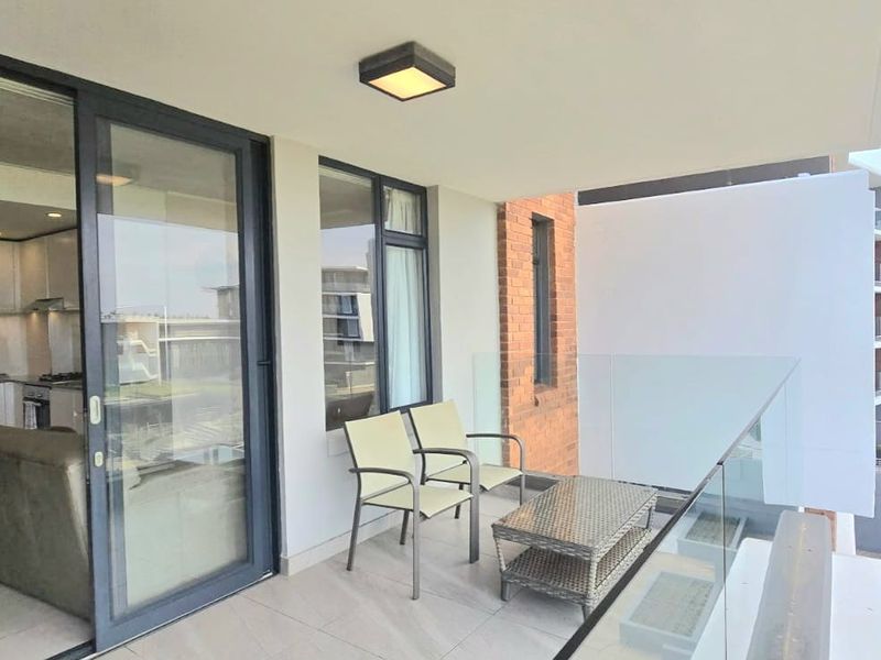 Relaxed coastal holiday lifestyle five minutes from Umhlanga Promenade, fully furnished for year-round rental income, private balcony with sea breezes and communal pool, braai area — two bedrooms, two baths.