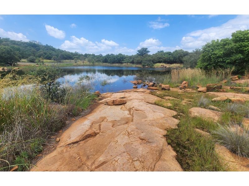 Wake to fish-eagle calls and daily game-viewing in Zwartkloof Private Game Reserve; north-east 2,500m² stand with dam views, massive rock formations and indigenous wild fig trees.