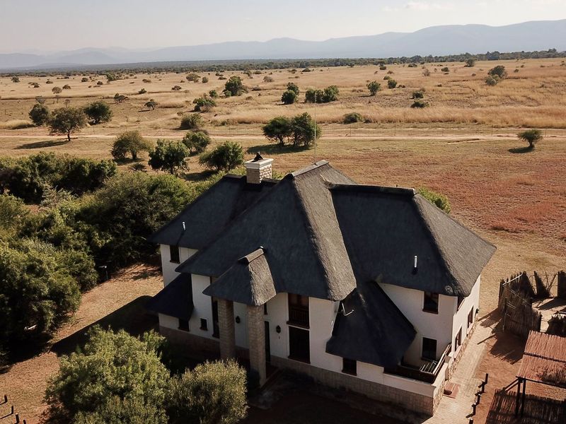 Golf-estate living with wildlife and wide Waterberg vistas, 1.5 hours from Pretoria, featuring pool and boma braai for entertaining, five bedrooms, five bathrooms, double garage.