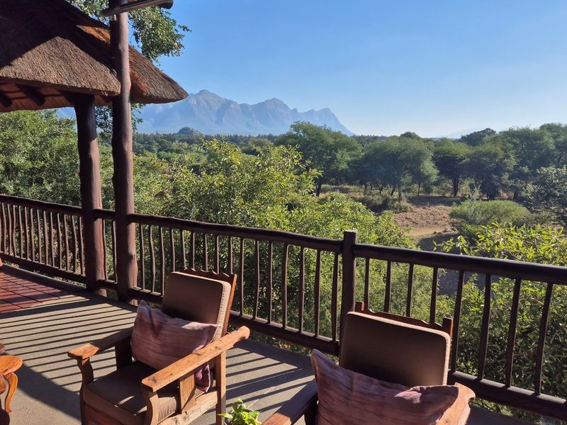 Live immersed in wildlife and mountain views in Blyde Wildlife Estate, Hoedspruit — private stand with 18,000L swimming pool and three en-suite bedrooms opening onto a spacious veranda.