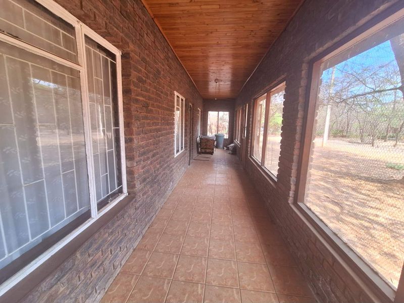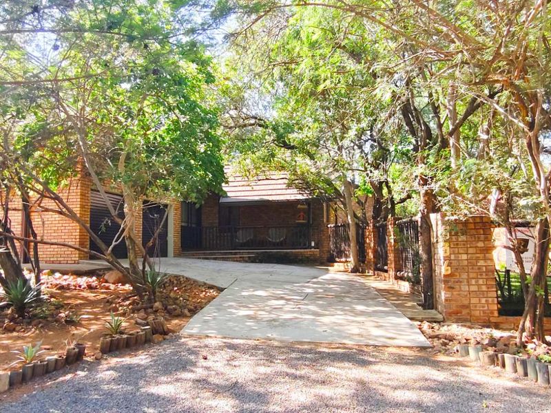 Bushveld living in Leeupoort with a covered built-in braai for effortless outdoor entertaining; includes a one-bedroom flatlet, four bedrooms and three bathrooms.