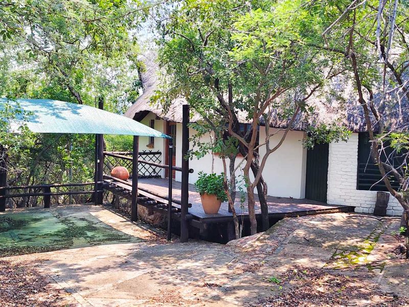 Retreat to bushveld living under mature shade trees with roaming wildlife, modern kitchen, back veranda and a 10kW off-grid solar system — two beds, two baths.