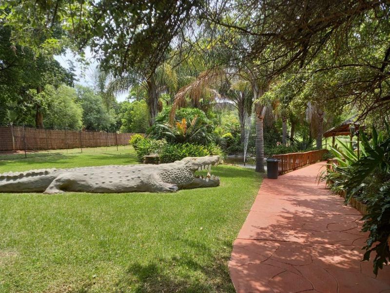 Embrace immersive game-farm resort living in the Waterberg foothills near Mookgopong, Limpopo — includes a fully operational crocodile breeding facility, thatch restaurant, pool with slides and multiple residences.