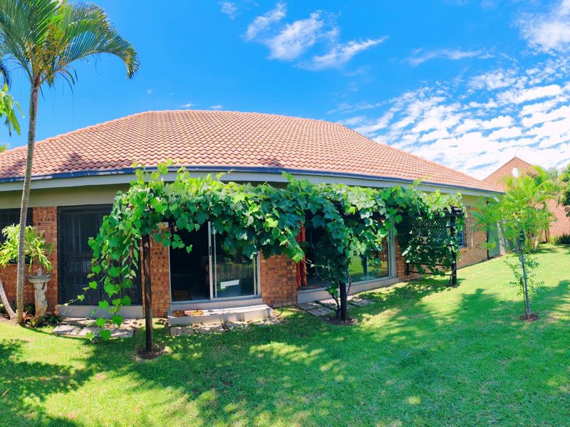 Golfside living for effortless entertaining and family comfort, with a covered veranda and lapa overlooking a lush garden framed by mature trees, three bedrooms and two bathrooms.