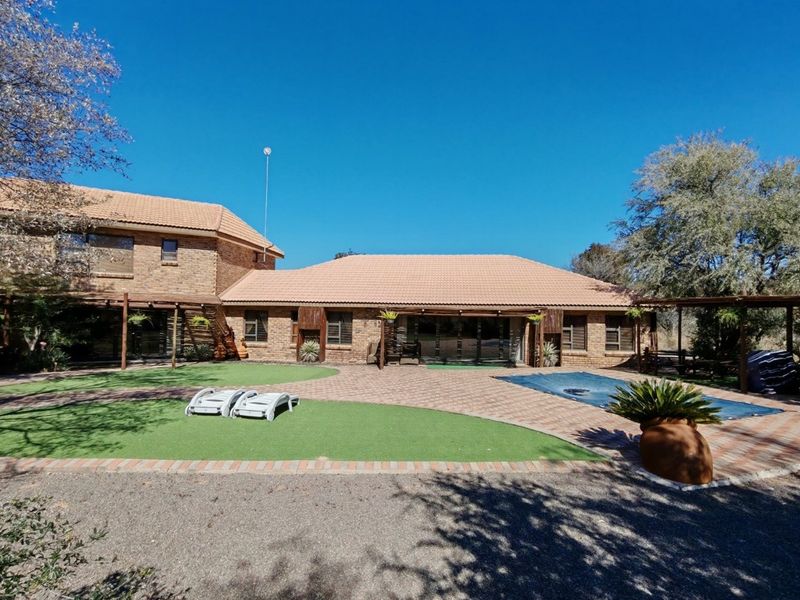 Bushveld retreat in Shona Langa Nature Estate near Bela Bela, private game reserve access, pool and lapa, games room with Jacuzzi — five-bed, four-bath, double garage.