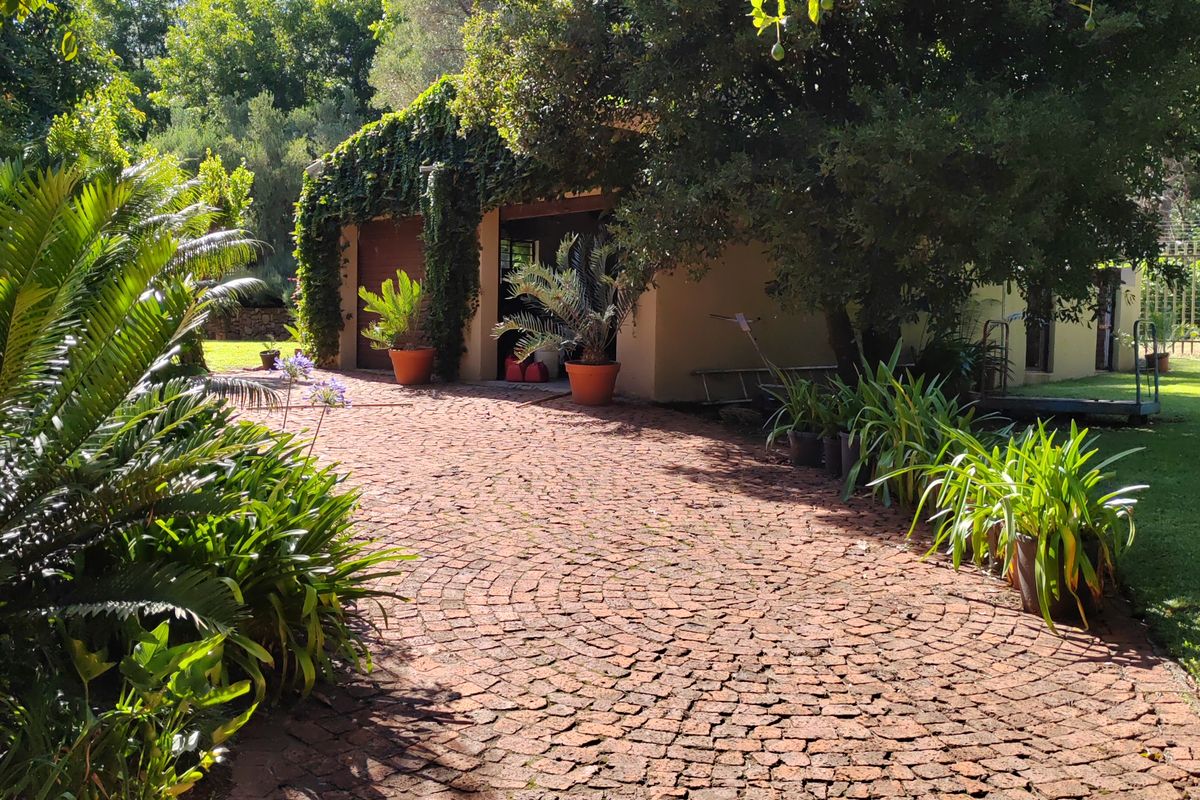 Two farmhouses on a 15ha plot, with garden cottages and outbuildings ideal as rooms for guests, all in a beautiful garden with water futures and a swimming pool. Now available, 9 bedrooms with 5 bathrooms all with views on the garden, two gourmet open plan kitchens to host government functions and serve dinners to the famous or conferences in stile, sculleries, pantries and storerooms, real cool farm verandah's, built-in wardrobes, built-in oil heated fireplaces, paved roads to open and lock-up garages, domestic worker rooms with bathrooms, wash and iron rooms, several braai areas around the house. An all year mild temperature against the northern side of the central Moot Ridge of the Magaliesberg near the Hartebeestpoortdam, 5km west of the Hornsnek T-junction. A pristine peace of mountain land with two valleys with seasonal water streams. All breathtaking as guesthouse or develop as a boutique hotel or farm cottage with endless possibilities. No load shedding.