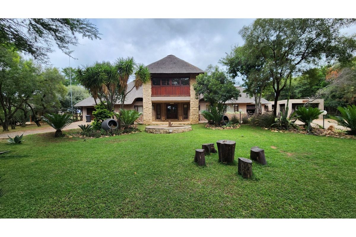 Bushveld retreat on Zebula Golf Estate—next to the 18th hole with roaming wildlife, large entertainment lapa with bar and splash pool; nine-bedroom layout ideal for family or rental.