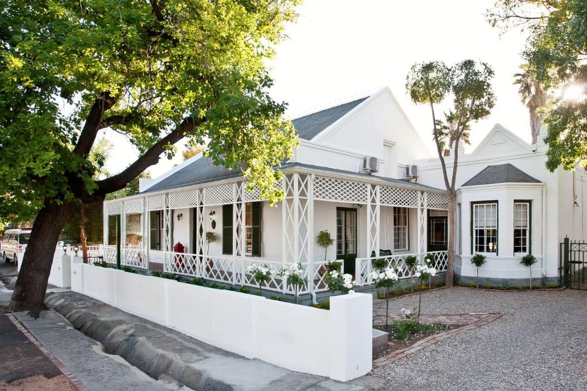 Recorded history states that the Village of Oudtshoorn, originally known as “Veldskoendorp” (leather shoe town), was laid out in 1847 on the farm Hartebeestrivier. Six years later (1853) this Heritage home was built by Mr J.H.Mulder, inspired by typical Cape vernacular style architecture combined with traditional Victorian and Klein Karoo elements. The original Victorian trelliswork which still stands perfectly intact today, was added around the turn of the Century. The 'lei-watersloot' running in front of the house is the last remaining section of the original open water lead-lined furrow which supplied water to the Oudtshoorn of old. To preserve the water furrow, Victorian trellis and historical façade,the property was declared as a National Monument in 1988.
