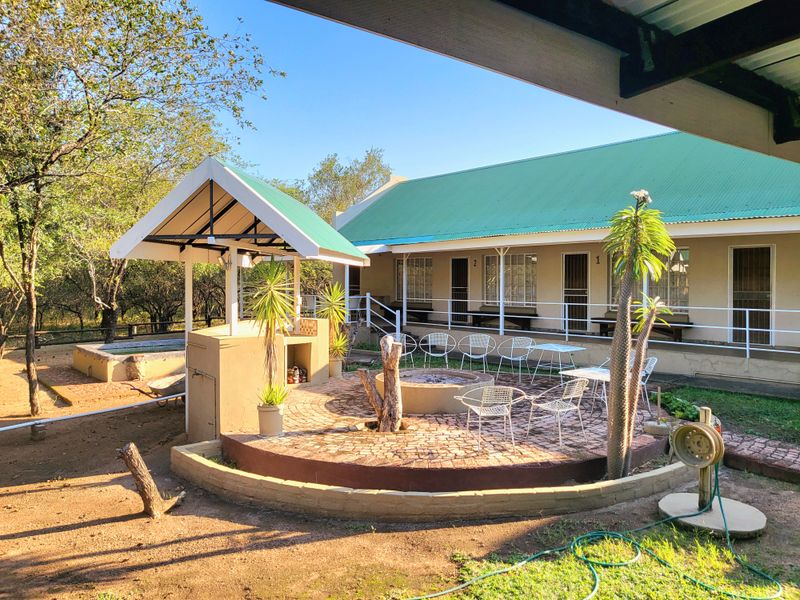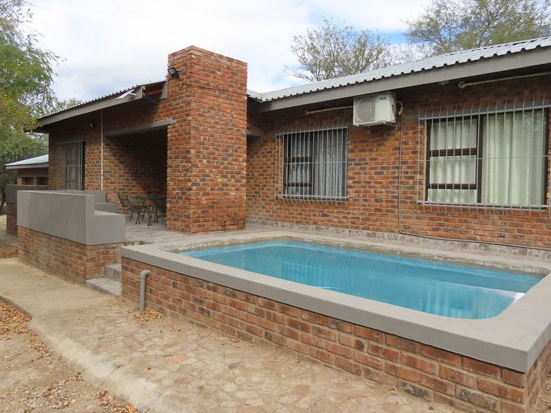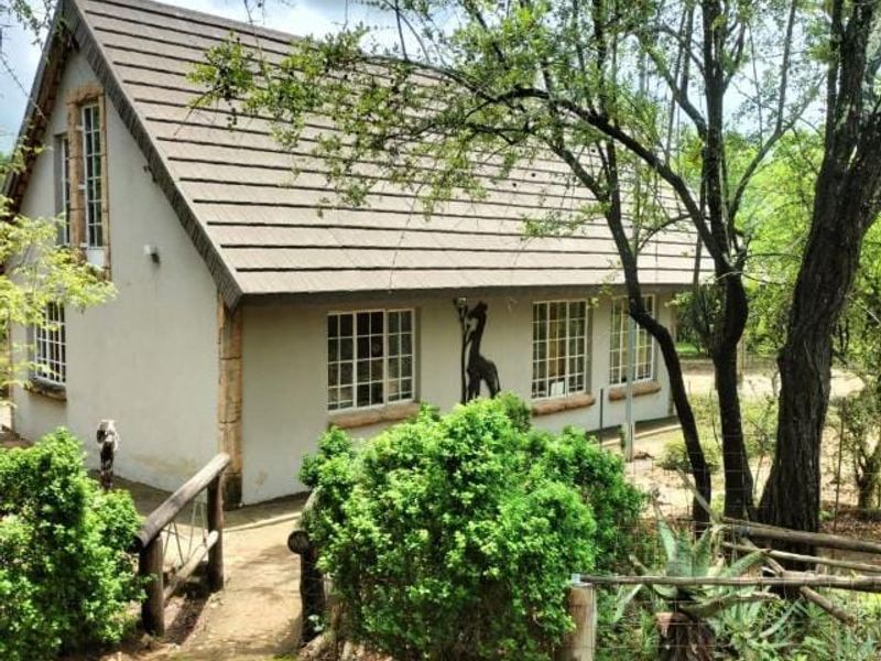 Escape to Marloth Park's indigenous bushveld, a private bush camp retreat with communal pool and four chalets, main house plus six bedrooms and six bathrooms on 4680m².