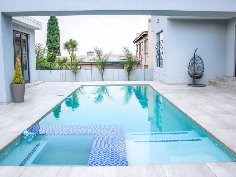 Entertainer's family retreat on a tree-lined Gholfsig street, with sparkling pool, lapa and separate two-bedroom flat — ideal for guests or rental, plus double garage and parking.