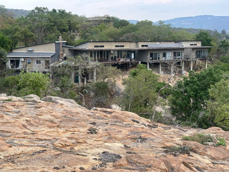 Embrace wildlife-backed luxury in La Roi Wildlife Estate, 10 minutes from Nelspruit, with an expansive timber deck and pool overlooking mountains — four bedrooms, 3.5 baths and four garages.
