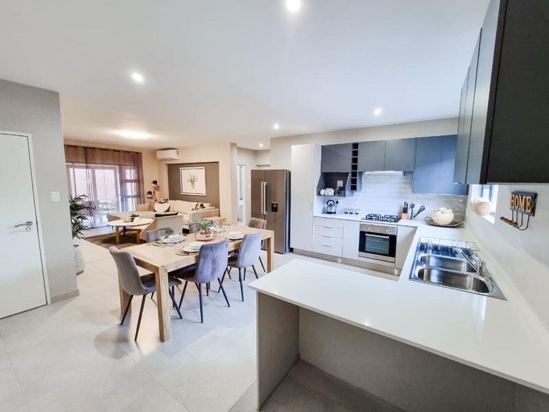 Enjoy effortless modern living in Nelspruit with easy access to shops and schools; 3-bedroom townhouse features battery back-up inverter, quartz kitchen, fibre-ready connectivity and double garage.