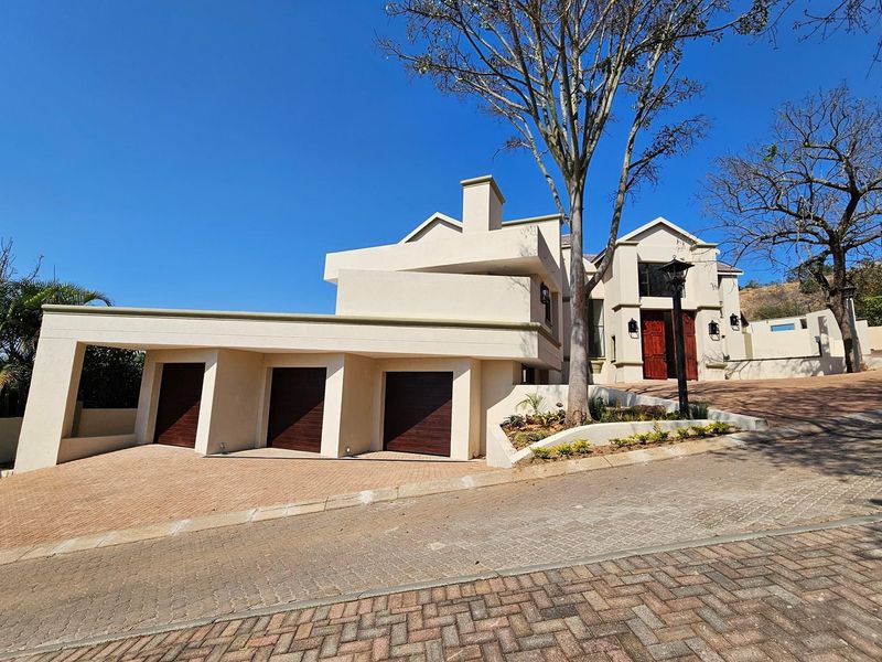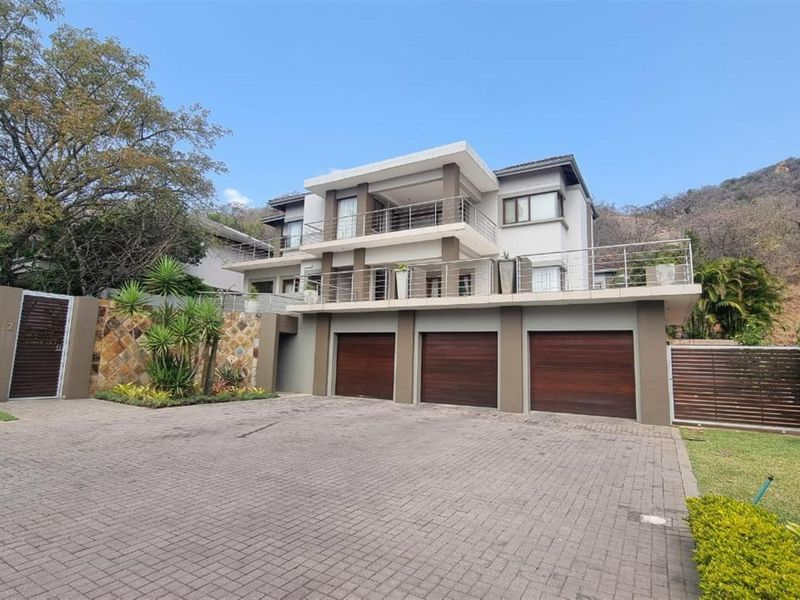 Entertainer's paradise in Matumi Golf Estate, set against sweeping Lowveld views with pool and private balconies; five en-suite bedrooms, home office, and five-car garage.