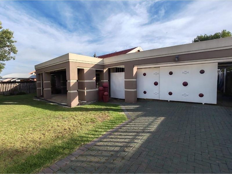 Family-friendly entertainer in Secunda's Green Area, steps from Secunda Mall and top schools, with open-plan living flowing to a covered patio, built-in bar and braai overlooking expansive garden.