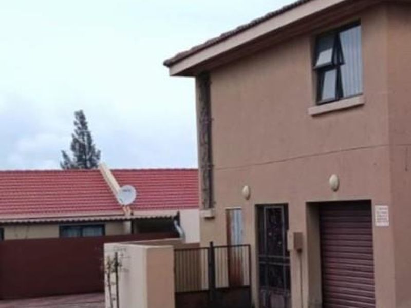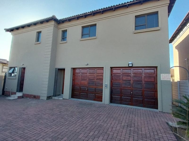 Entertainer's double-storey townhouse in Secunda with fully furnished interiors and built-in braai in the carport. Main bedroom with balcony, three bedrooms and three en-suite bathrooms.