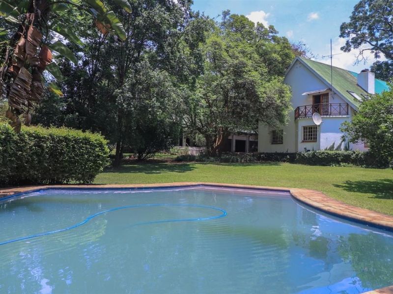 Entertainer’s private countryside estate with multiple income-ready flatlets, expansive manicured garden and clear pool — nine bedrooms, eight bathrooms and ten covered parking across 9.54 hectares.