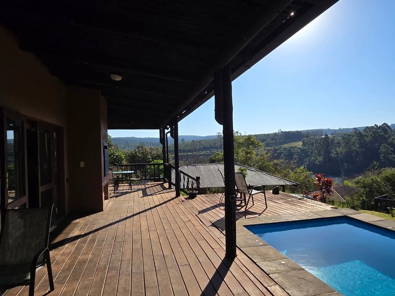 Serene hillside lifestyle above Da Gama Dam with sweeping views and thriving macadamia orchard — income from six rental homes and nursery, plus workshop and borehole water.