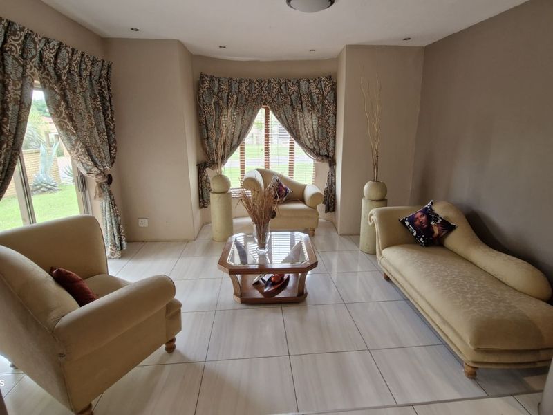 Entertainer's dream in a spacious suburban setting with private pool, jacuzzi and boma; ultra-modern kitchen with scullery. Five bedrooms (three en-suite), four bathrooms across expansive living zones.