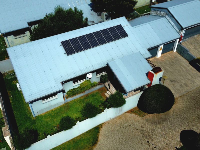 Enjoy eco-conscious contemporary living in Ben Fleur enclave, Witbank, with integrated solar power, private low-maintenance garden and alfresco braai, three bedrooms, two bathrooms, double garage.