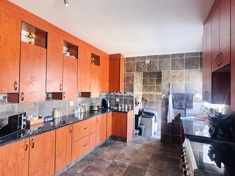 Spacious family living on a 1500 m² stand in a peaceful neighbourhood, with open-plan lounge, gas kitchen and scullery, main walk-in closet and en-suite, convertible storeroom and 3-car carports.