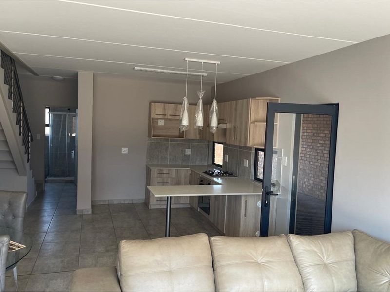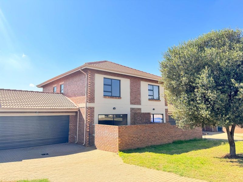 Effortless family living in a secure 24-hour access-controlled complex — brand-new double-storey townhouse with open-plan kitchen and gas hob, solar-assisted geyser, three bedrooms, three baths, double carports.