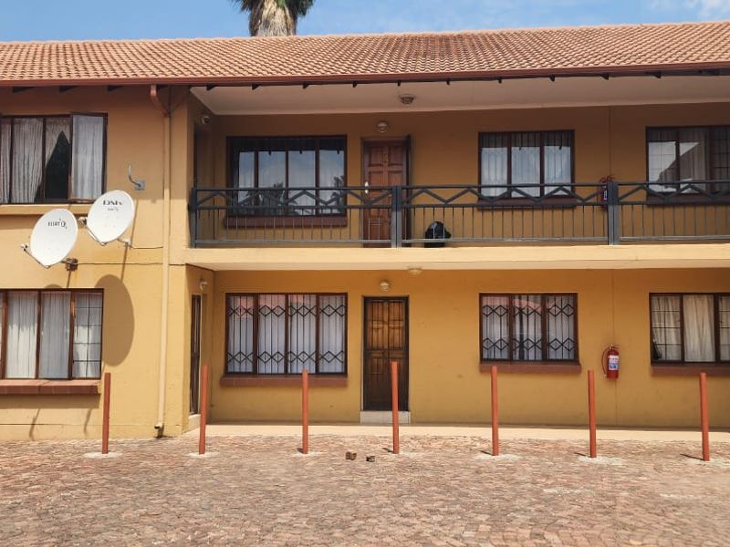 Easy family living near Olienpark Primary and Brits High School — open-plan TV/dining, air-conditioned comfort, prepaid utilities and a covered parking carport. Two bedrooms, one bathroom.