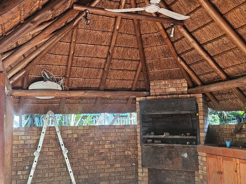 Easy outdoor entertaining in Elandsrand, Brits with a large garden and thatch lapa with built‑in braai, plus a flatlet — four bedrooms and three bathrooms.