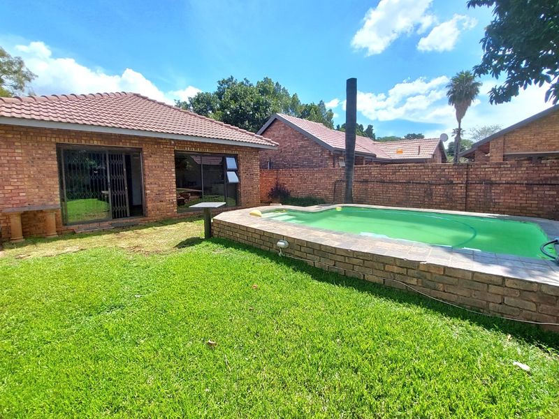 Family-focused entertaining in Brits Central with a large garden, pool and two-bedroom flatlet; main home offers three bedrooms and two bathrooms, close to Spar.