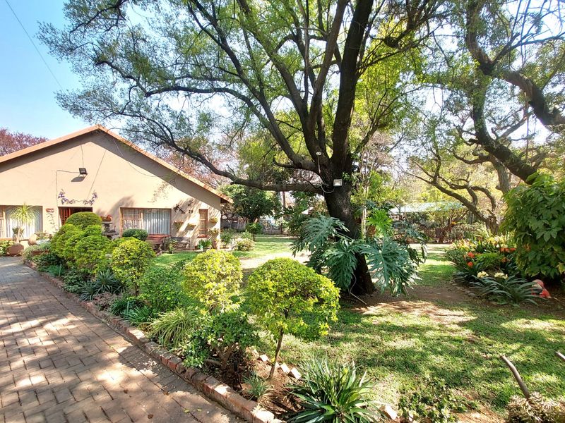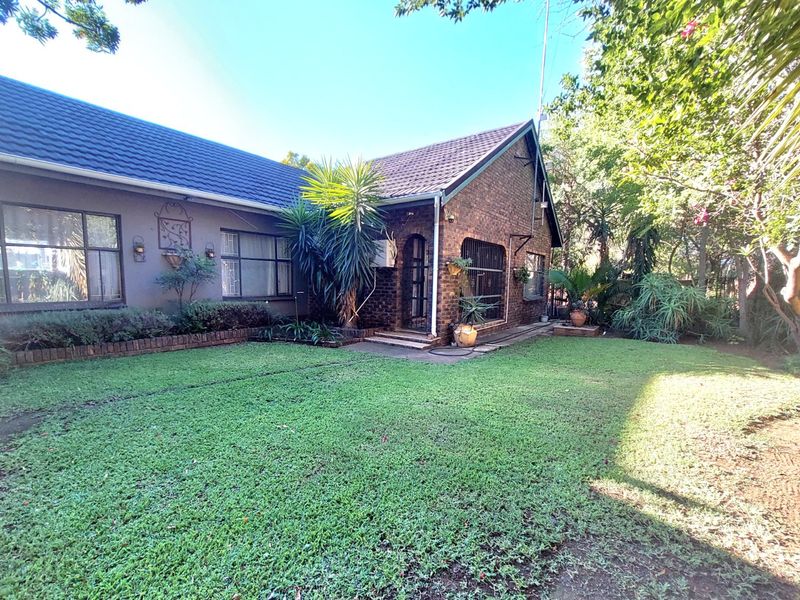 Family-focused oasis in Brits, moments from top schools and shops, with an established garden, large shade trees, thatched lapa with boma braai, electric fence and cameras. 4 beds, 3 baths.