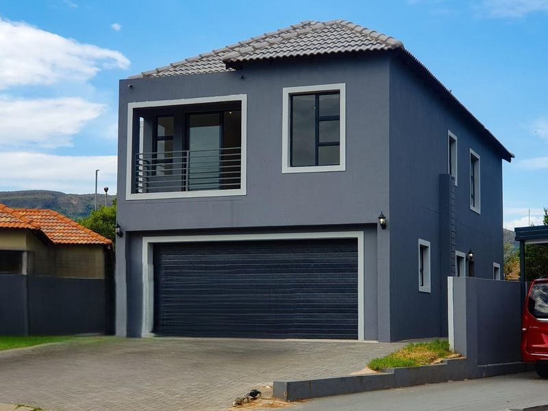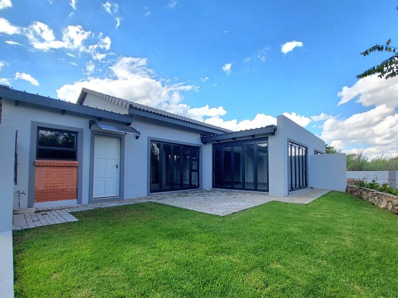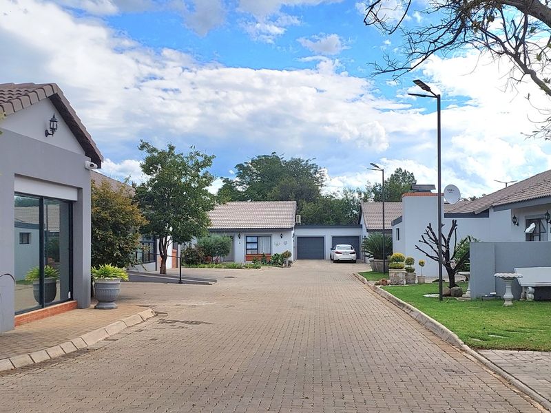 Low-maintenance lock-up-and-go living in Kosmos Village Estate, with Magaliesberg mountain and lake views, modern kitchen, dedicated braai and guest cottage ensuite; two bedrooms, two bathrooms, double garage.