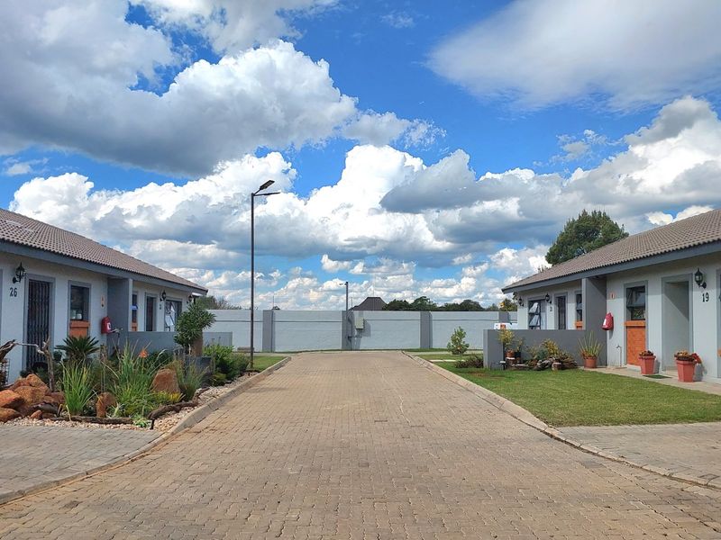 Relaxed modern living at The Clarinet in Melodie, Hartbeespoort — steps from Magalies views and Hartbeespoort Dam. Open-plan two-bedroom, one-bath apartment with private garden.