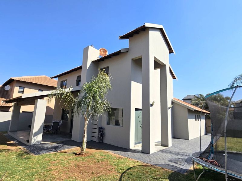 Relaxed family living in Melodie Waters Estate, steps from tranquil waterways and community pool. Double-story home with modern kitchen, veranda with built-in braai, three bedrooms, 2.5 baths.