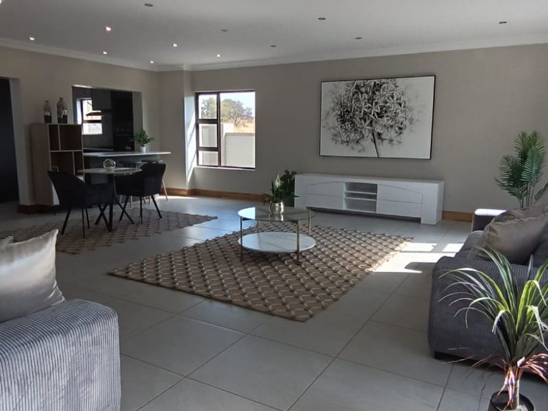 Modern, tranquil living in Melodie — close to Hartbeespoort Dam and the Magaliesberg, with open-plan apartments/duplexes, sleek finishes and private pet-friendly gardens. Three beds, two baths, single garage.