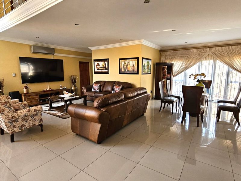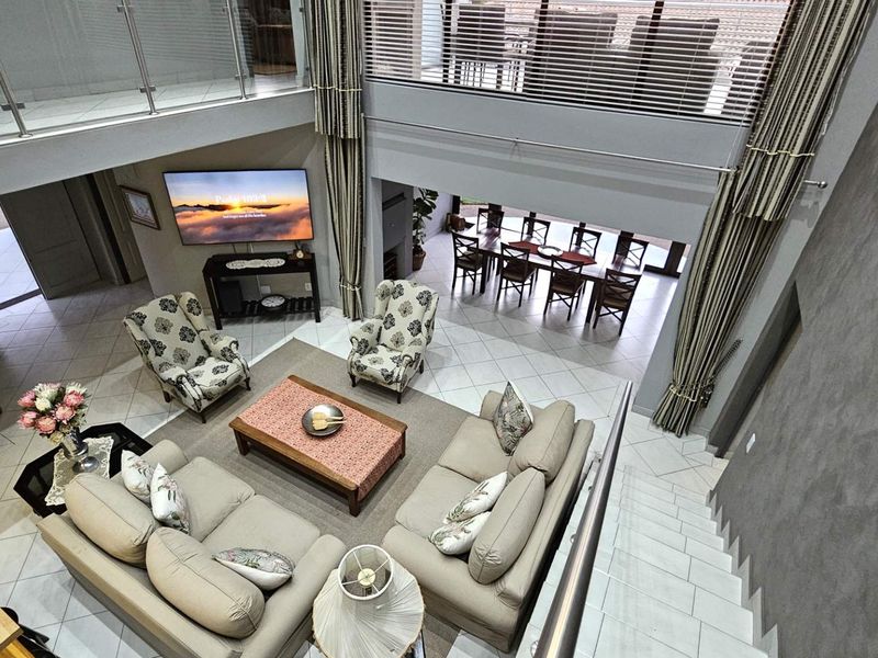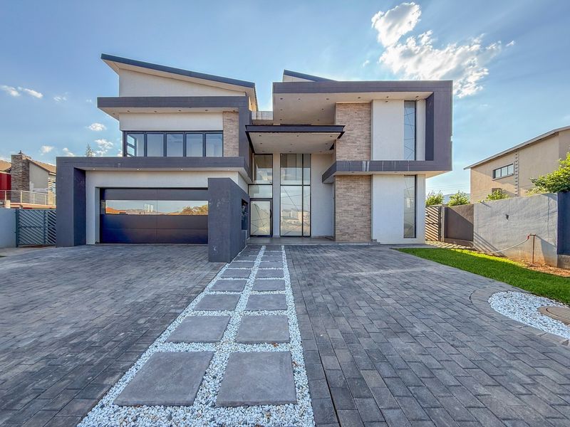Luxurious double-story home in Melodie with high-end finishes, multiple living spaces, six bedrooms, and extensive security features.