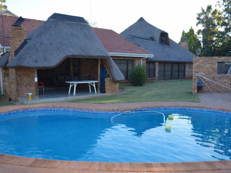 Entertainer’s home in Doringkruin, Klerksdorp — relaxed pool and bar/braai living, self‑sufficient solar/borehole backup, plus a flatlet for guests. Three bedrooms, two baths.