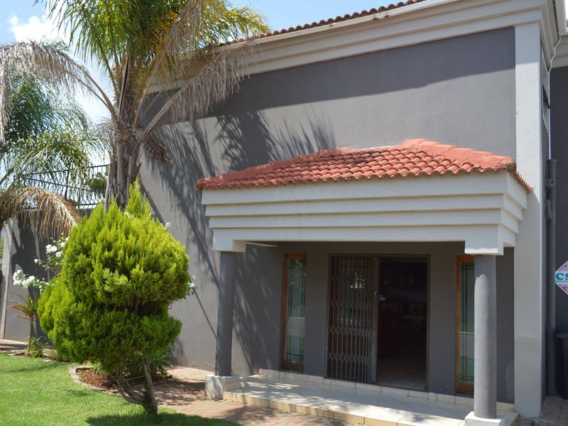 Entertainer's family home in desirable Doringkruin, Klerksdorp, with covered patio and built-in braai opening to manicured garden; three bedrooms, two bathrooms, double garage.