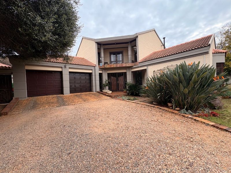 Entertainer's lifestyle in sought-after Doringkruin complex with generous open-plan living, bar-equipped entertainment area opening to garden and patio, private balconies; five bedrooms, 2.5 baths, double garage.