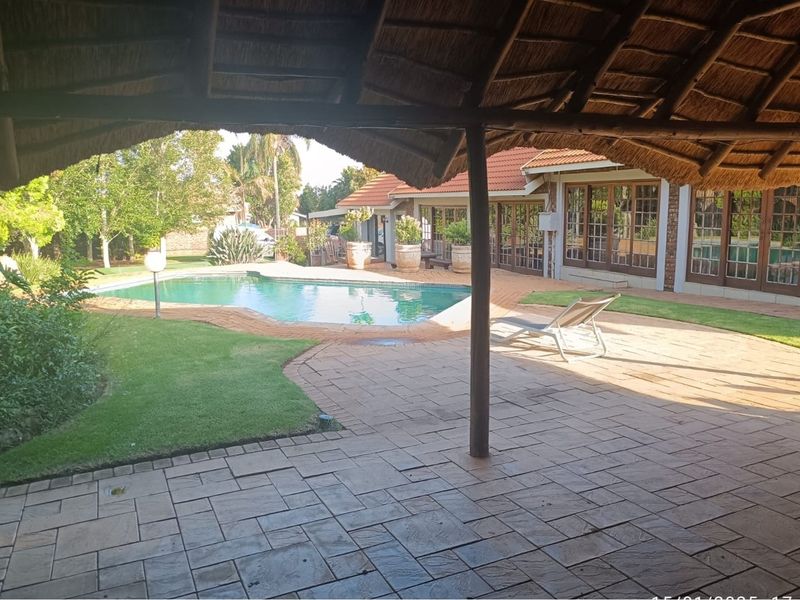Family-focused entertaining in Doringkruin, Klerksdorp — sprawling garden, sparkling pool and built-in braai for effortless summer gatherings; five bedrooms, four bathrooms and study.