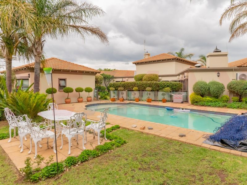 Entertainer's family home in Doringkruin offering secure, convenient suburban living near schools and shops, with private pool and lush garden, plus staff room and automated double garage.