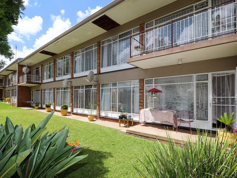 Sunlit, convenient city living in a well-managed complex, centrally located near shops and schools; north-facing two bedrooms, open-plan kitchen, communal garden, one bathroom and single garage.