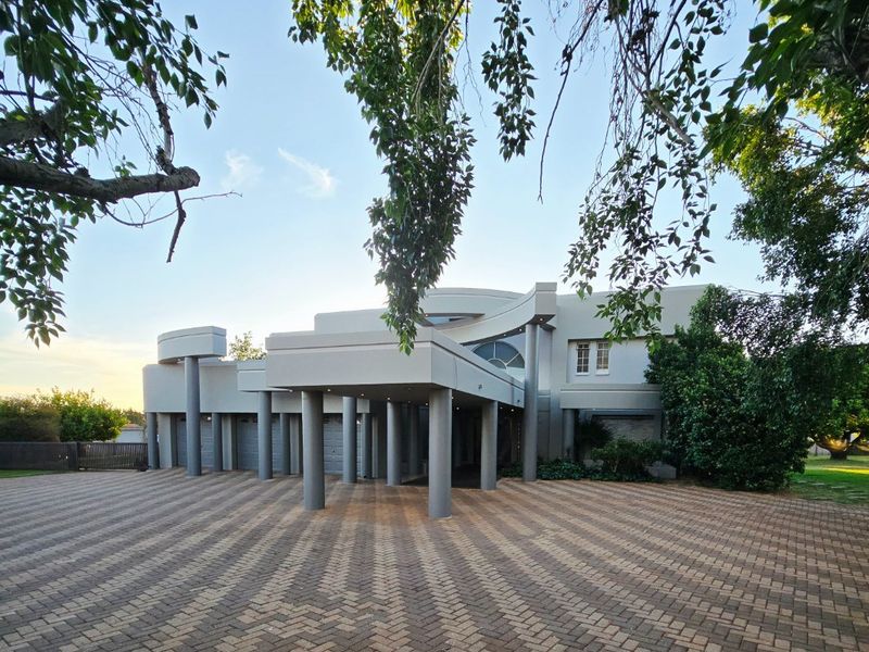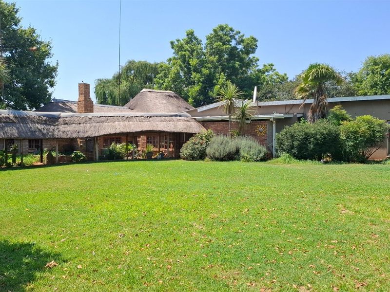 Entertainer's country retreat in Wilkoppies, Klerksdorp โ sprawling 1-hectare grounds with development potential, private cinema patio with dual braais and 7-seater jacuzzi; five beds, three baths, six garages.
