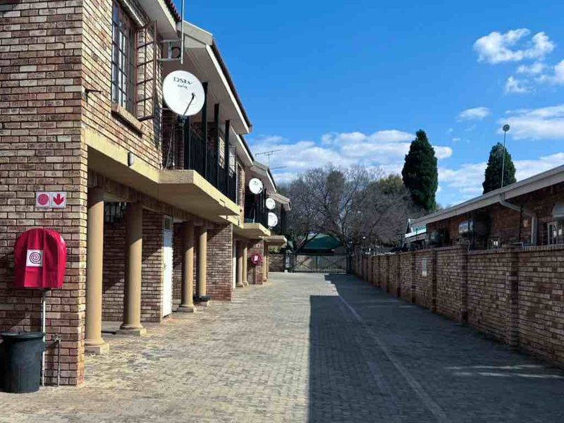 Student-friendly apartment steps from NWU campus, quiet corner first-floor setting with secure complex and communal braai — one-bedroom, one-bathroom with covered parking and prepaid electricity.