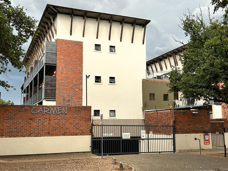 Live steps from North West University in Carmen — compact student-friendly apartment with balcony and open-plan kitchen, ample storage, one bedroom, bathroom and covered parking included.