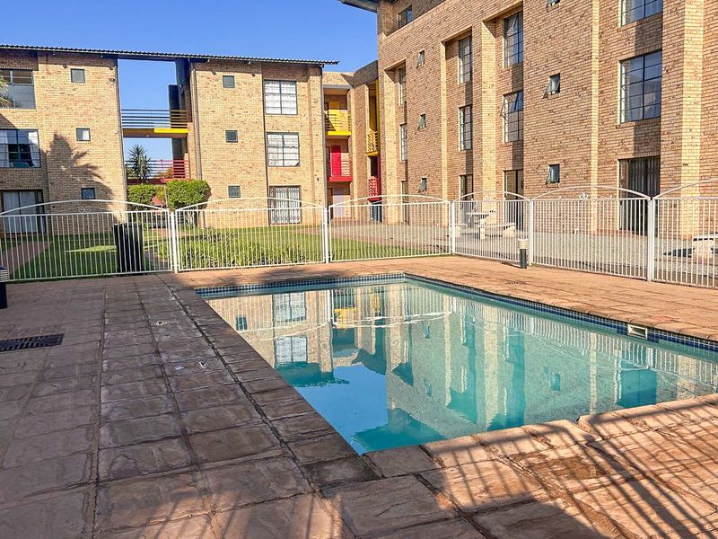Perfect for students or investors, this apartment sits under 1km from North-West University, offering easy campus access, a communal swimming pool, two bedrooms, one bath, and two covered parking spaces.