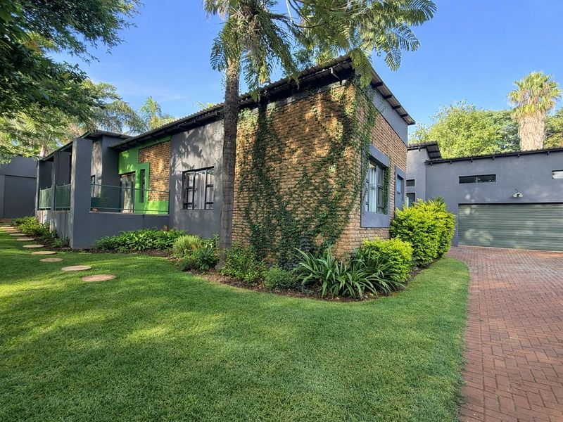 Relaxed family living in Geelhoutpark with a lush garden, thatched patio and built-in braai overlooking a sparkling pool — four bedrooms, two bathrooms and ample covered parking.