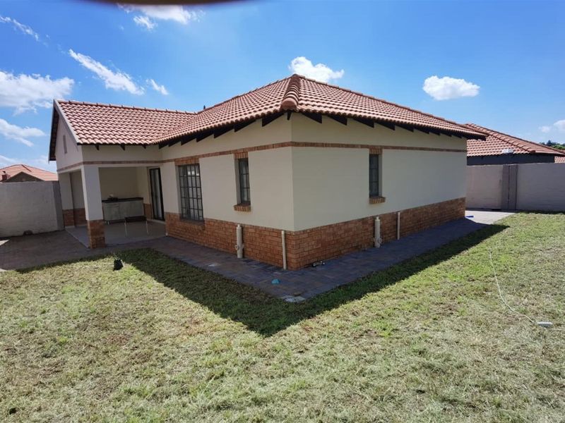 Comfortable family living near shopping, schools and the N4 — pet-friendly community with open-plan living, sleek granite kitchen and patio with built-in braai. Three beds, two baths, double garage.
