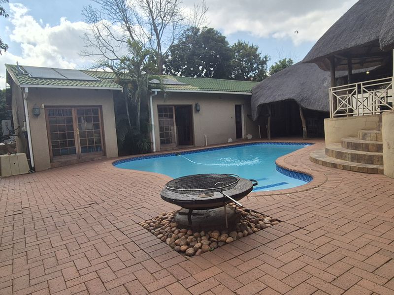 Entertainer's paradise in sought-after Protea Park, moments from top schools and shops — extra-large lapa with built-in bar and braai, boma and pool; three bedrooms, four-car covered parking.